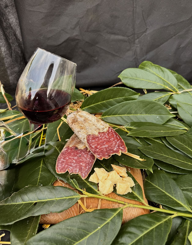Il risultato è una selezione di salumi tipici dal gusto autentico: salami, prosciutti e specialità stagionate che racchiudono tutto il sapore della nostra terra.