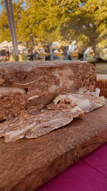 Coppa di testa taglio tradizionale ricco di sapore, preparata con cura secondo l’antica ricetta. Morbida e gustosa , è un classico della gastronomia popolare che conserva tutto il sapore autentico di una volta.